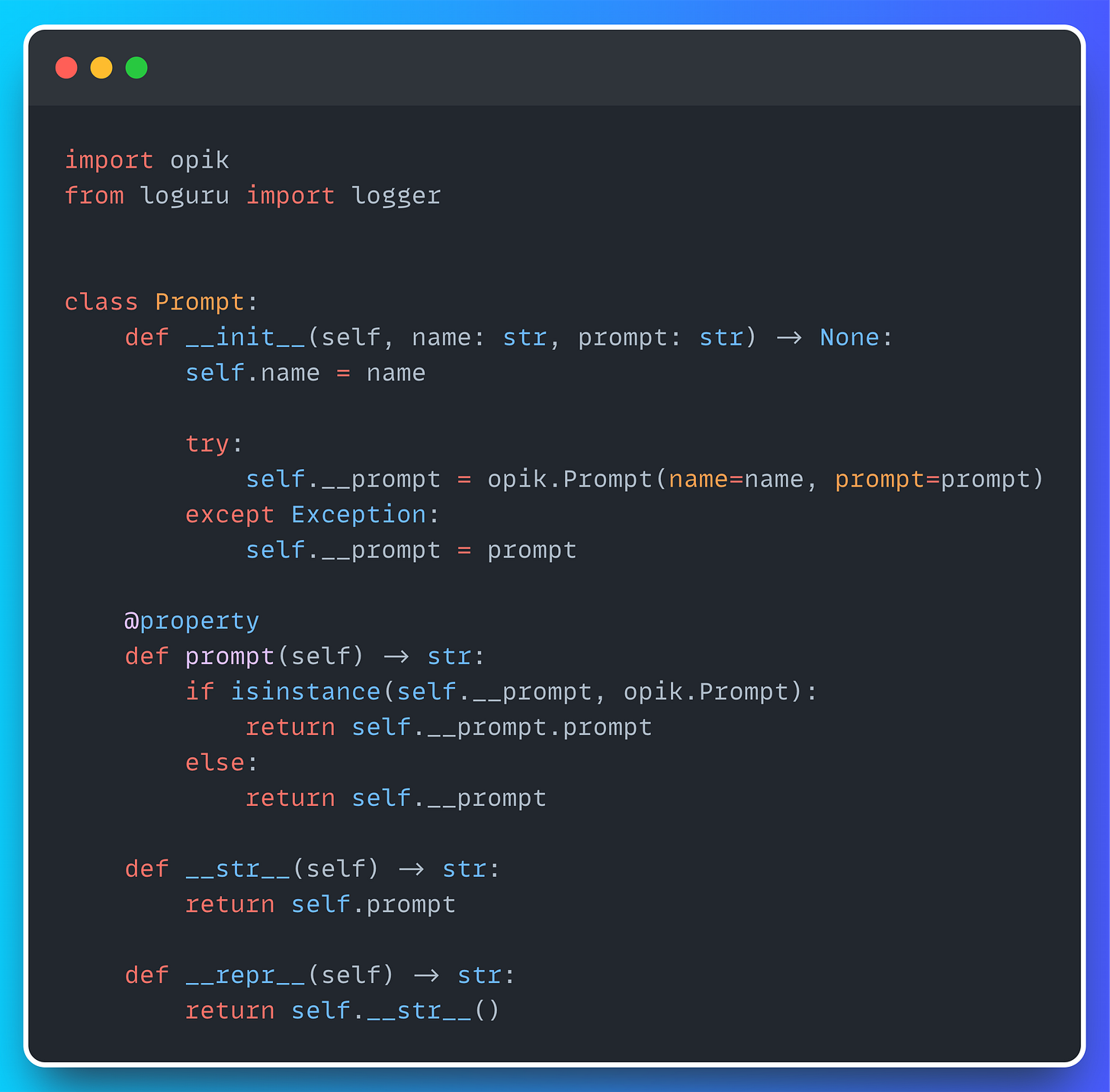 With Opik, keeping track of prompt changes is straightforward. Just check out this example class from the PhiloAgents source code: